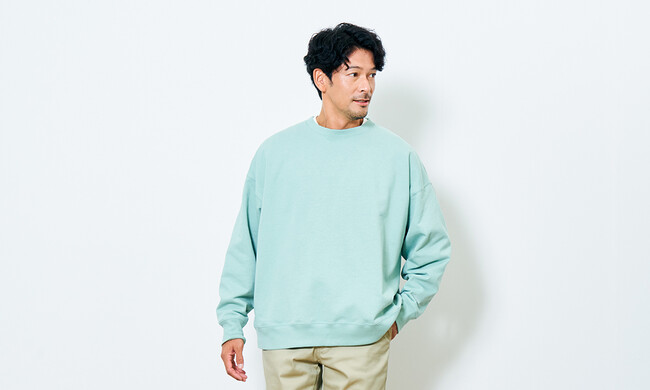 シンプルなクルーネックデザインに、ゆとりのあるボックスシルエット。アームホールも幅広なので、Tシャツなどをインナーにしたレイヤードスタイルもおすすめです。