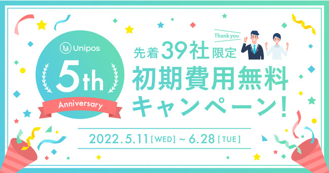 今回、「Unipos」サービス開始5周年を記念し、先着39社に初期費用を無料にするキャンペーンを実施いたします。