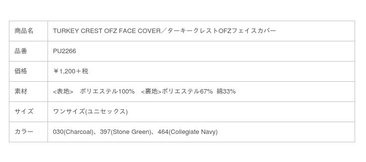 TURKEY CREST OFZ FACE COVER ¥1,200+税