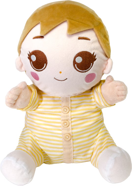 かまって「ひろちゃん」は、赤ちゃんを“あやす”ことを通して、あやす側に癒やしの効果が得られるはず、という点に着目したこれまでにないヒーリングコミュニケーションデバイスです。本物の赤ちゃんと同じように、様々な声を発して感情を表現するので、ユーザーは「だっこ」したり「たかいたかい」したりすることで、実際の赤ちゃんと関わるように楽しむことができます。