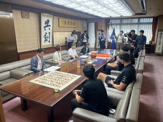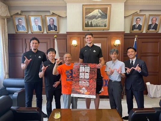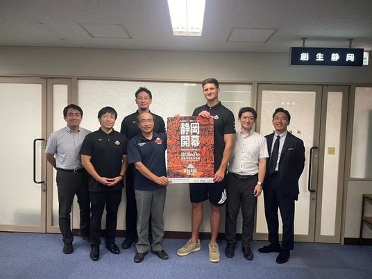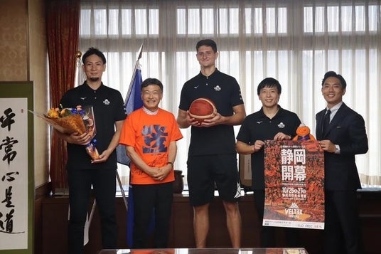 このたび、ベルテックス静岡では8月26日(月)、2024‐25シーズン開幕を迎えるにあたり、難波喬司 静岡市長を表敬訪問いたしました。当日は、ベルテックス静岡より松永康太 代表取締役社長、森高大ヘッドコーチ、加納誠也 選手、ジョン・ハーラー選手、池野雄人 マネージャー兼通訳が出席いたしました。