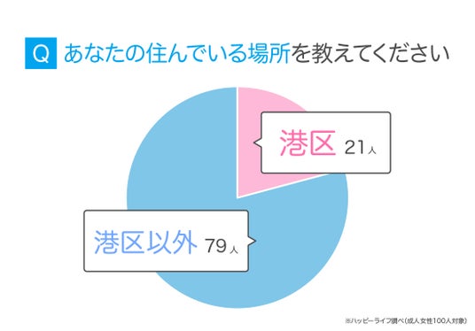 住んでいる場所について聞いてみたところ、「港区」と回答した人は約2割でした。