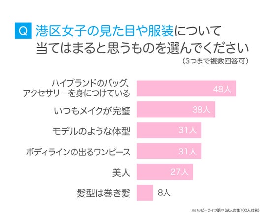 今回の記事では、累計会員数3500万(※1)を誇る出会い・恋愛マッチングアプリ・サービス「ハッピーメール( https://happymail.co.jp/ )(運営:株式会社アイベック 本社:福岡県福岡市)」にて、港区女子である成人女性100人を対象に、「港区女子」に関するアンケート調査を実施しました。