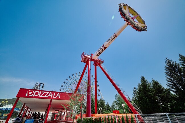 地上43m、最大傾斜は120度、 最高速度は時速102kmという、高さと速さと回転を兼ね備えた絶叫アトラクションで恋の空中ライドをお楽しみください。