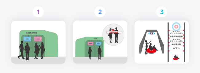 2.同じタイミングでお並び頂いた男性1名と女性1名の2名1グループがマッチング。