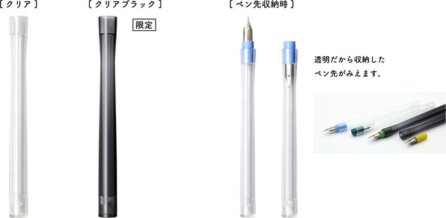 収納したペン先が見えるクリア軸に加え、クリアブラック軸も数量限定で発売いたします。