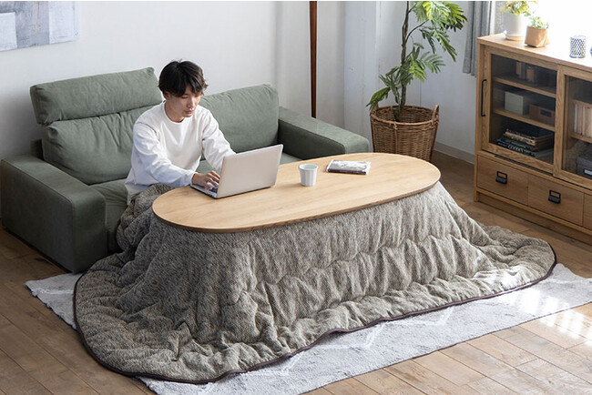 座椅子やローソファに座って使っても足の当たりが気にならないよう、一般的なこたつよりも高めの設計にしています。長時間こたつに入っていても快適に過ごせるため、座椅子やソファと合わせて使うことをおすすめします。
