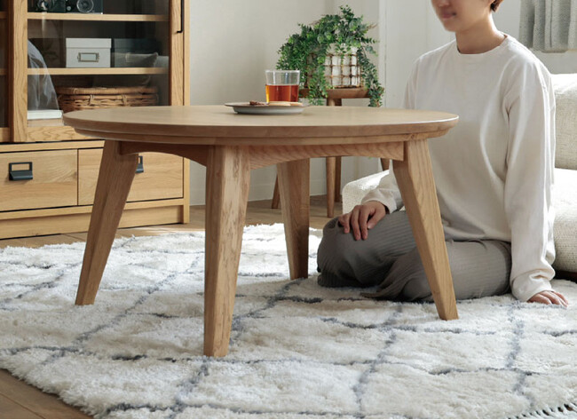 「クルリ」こたつテーブルとジャストフィットするサイズ感で思わず長居したくなるアイテムです。