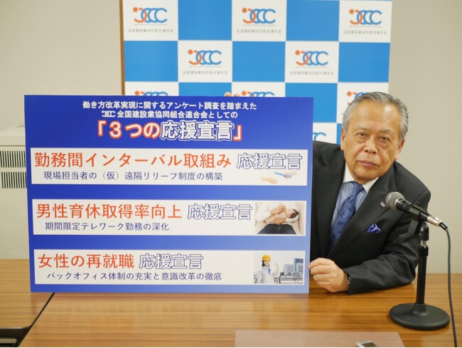 2024 年1月12 日に、中小建設企業の発展・向上ならびに労働環境の改善を目指す全国建設業協同組合連合会(所在地:東京都中央区、会長:青柳剛、以下「全建協連」)と、3,000 社以上の働き方改革コンサルティングを手がける株式会社ワーク・ライフバランス 本社:東京都港区、代表取締役社長:小室淑恵、以下「WLB 社」) は、全建協連の「勤務間インターバル宣言」(以下「インターバル宣言」、https://work life b.co.jp/workinterval/ workinterval/ )賛同に伴う記者発表を共同で行いました。