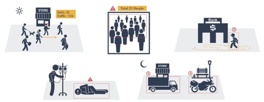 「うろつき検知」や「ラインクロス」「ホールドアップ」等は、事件事故が今まさに起ころうとしていることを瞬時に検知・通知することで、トラブルを未然に防ぎ、人々の安心安全な生活に寄与します。
