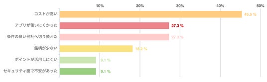 アンケートによれば、取引をやめた理由としては「コストが高い(45.5%)」点が最も多く挙げられた。