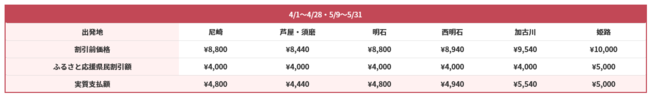 兵庫県が感染状況レベル3またはまん延防止等重点措置の適用地域になったときは、キャンペーンの利用を停止します。