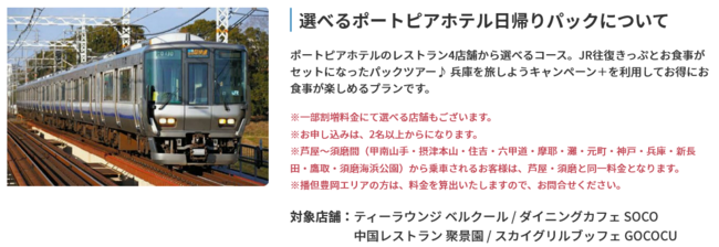 株式会社フォーティーズ(本社:大阪市鶴見区、代表取締役 岡武史)は「ふるさと応援!ひょうごを旅しようキャンペーン」の対象商品としてポートピアホテルのレストランとJR往復きっぷがセットになったパックツアーの期間延長分の販売を開始しました。