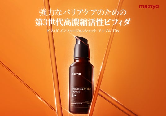 このたびmanyoでは、 第3世代ビフィダ「ビフィダ インフュージョンショット アンプル 1Dx」 が新登場いたします。 3世代の高濃縮活性ビフィダとマイクロショットの組み合わせで、短時間で肌を整えるアンプルです。