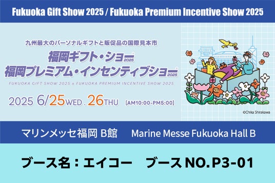 株式会社エイコー(本社:東京都墨田区)は、 2025年6月25日(水)~6月26日(木)に福岡・マリンメッセ福岡 B館にて開催される、販促・企業ギフト・マーケティングの国際的な専門見本市「福岡プレミアム・インセンティブショー2025」(主催:株式会社ビジネスガイド社)に出展することをお知らせいたします。