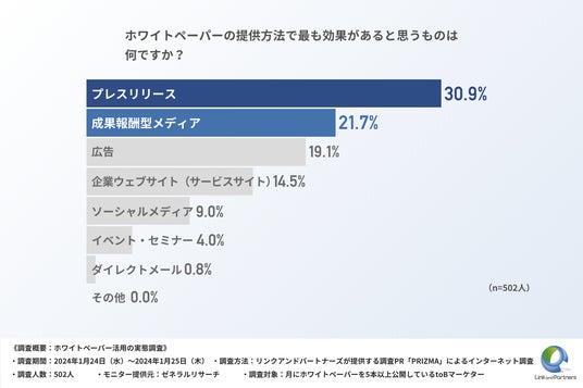 ・ホワイトペーパーの提供方法で最も効果があるチャンネルは、「プレスリリース」と判明
