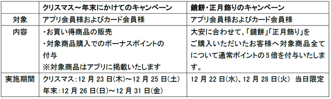 株式会社ベイシア(本社:群馬県前橋市、代表取締役社長:橋本浩英)は、クリスマスから年末年始にかけてお得なキャンペーンを実施いたします。キャンペーンではお買い得商品を多数取り揃えているほか、対象商品購入でのベイシアアプリボーナスポイント付与、さらに、アプリポイントプレゼント企画等を実施いたします。お買い物の機会が多くなるこの時期に嬉しいお得な企画が満載ですのでぜひご利用ください。