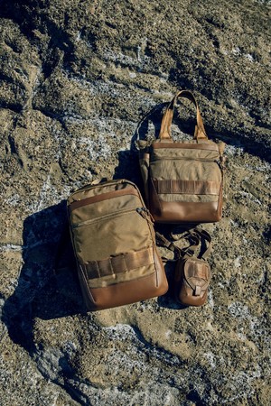 中空構造の高強力糸を織り交ぜて強度を維持しながら軽量化した1680デニール×840デニールのエアバリスティックナイロンをメインで使用し、コンビネーションとしてDannerのブーツに使用されているレザーを一部搭載した計3アイテムをラインナップ。バッグサイドには、両ブランドのロゴがエンボス加工(刻印)で施すなど特別デザインに仕立て、両ブランドのアイデンティティを兼ね備えたレザーとナイロンのコンビネーションバッグに仕上げました。
