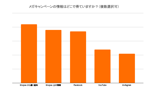 プッシュ通知とShopeeプラットフォーム上の検索は、消費者のメガキャンペーンに関する主な情報源となっています。Facebook、YouTube、InstagramといったSNSプラットフォームを活用することも非常に重要であることが分かりました。