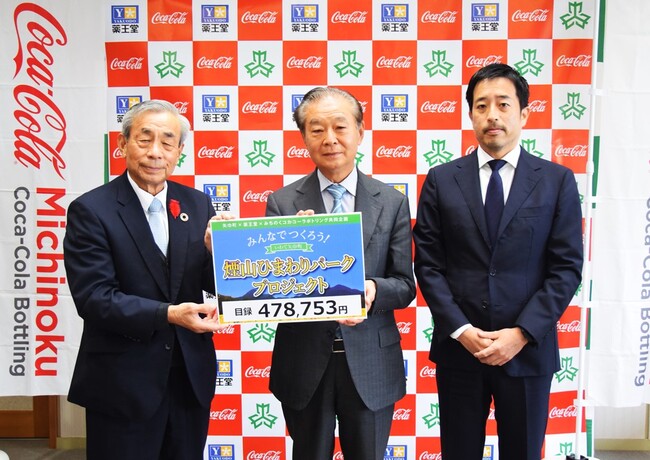みちのくコカ・コーラボトリング株式会社(本社: 岩手県盛岡市、代表取締役社長: 谷村 広和、以下「当社」)は、株式会社薬王堂(本社: 岩手県盛岡市、代表取締役 社長執行役員: 西郷 辰弘)との共同企画「みんなでつくろう!煙山ひまわりパークプロジェクト」を実施し、10月6日(木)に寄付金の目録を贈呈いたしました。