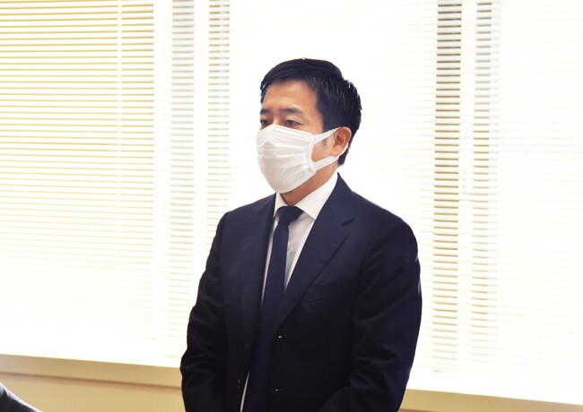 【出席者】 <矢巾町> 町長 高橋 昌造 様、<株式会社薬王堂> 代表取締役 社長執行役員 西郷 辰弘 様、<当社> 代表取締役社長 谷村 広和