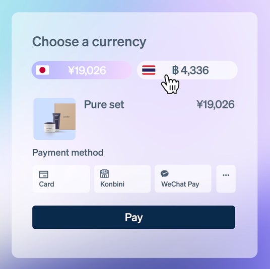 2023 年に Stripe が行ったデジタル貿易調査によると、79% の日本企業が「2025 年までに新たな国への販売を計画」しており 、全世界平均の 66% と比較しても高く、国外への進出意向の高さが伺えます。その際に最も懸念されるのは、現地の嗜好に合わせた決済手段への対応だということが分かりました。Adaptive Pricing (自動通貨換算) は、先行して導入された北米や英国に加え、日本、オーストラリア、インド、香港、マレーシア、シンガポール、タイなどのアジア太平洋地域をはじめ、欧州諸国やメキシコ、ブラジル、アラブ首長国連邦などの国や地域で、世界 150 カ国以上の顧客に対し現地通貨での価格提示を可能にします。また、顧客が自国通貨や自国に最も適した決済方法を活用できるようにすることで、現地独自の決済方法の利用を増やすこともできます。Stripe が行った事前テスト*では、購入時に通貨の選択肢が与えられた場合、90% の顧客が「現地通貨で購買を選択」していることが分かっています。