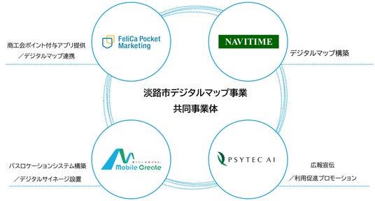 この度当社は、株式会社ナビタイムジャパン(本社:東京都港区、代表取締役:大西啓介)、モバイルクリエイト株式会社(本社:大分県大分市、代表取締役:村井雄司)、サイテックアイ株式会社(本社:香川県高松市、代表取締役:大澤佳加)と共同事業体を組み、「淡路市地域DX導入支援業務」に取り組むため、淡路市と委託契約を締結いたしました。