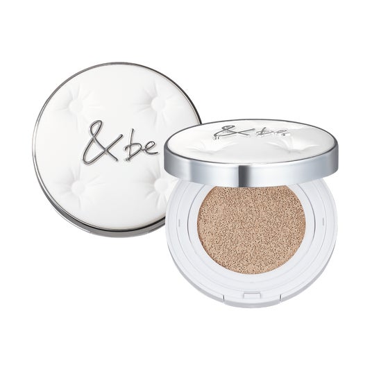 メイクしたての美しさが24時間※1続く「&be ラスティングクッションファンデーション」に続き、ツヤタイプのクッションファンデーションが登場。特殊な密着ポリマー※2とウォータリーフィルム処方によって、肌に溶け込むように広がり、自然で軽やかな仕上がりを実現しました。毛穴や色むらをカバーしながら、発光するような透明感※3とツヤをもたらします。重ねても厚ぼったくならずにカバー力を調整できるため、ナチュラルな仕上がりはもちろん、カバー力を重視される方もお使いいただけます。
