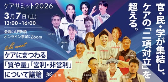 介護のトータルケアカンパニーとして全国47都道府県で障害をお持ちの方や高齢者に介護サービスを提供する株式会社土屋(本社:岡山県井原市、代表取締役:高浜敏之)は、2026年3月7日(土)、『ケアサミット2026―立場を超え“利用者のための共創”を実現するには ―』を開催しました。このたびイベントの反響を受け、イベントレポートを公開いたします。