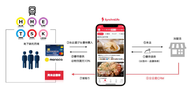 今般の提携を通じて、ウィローカード会員のお客さまは、「シンクロライフ」が一部会員限定で提供する事前購入型の「自信の一品優待券」を常時ご利用いただけます。加えて「自信の一品優待券」の購入代金をウィローカードで決済することで10%(通常の10倍)のシンクロポイント還元が受けられます。2022年夏から開始するこの新たなサービスにより、名古屋市営地下鉄利用者と、沿線の飲食店との出会いも創造してまいります。