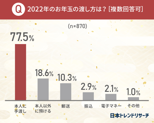 コロナ禍以前と2022年で、お年玉の渡し方には変化はあるのでしょうか。