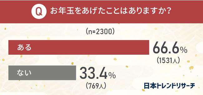 66.6%の方が、これまでにお年玉をあげたことが「ある」と回答しました。