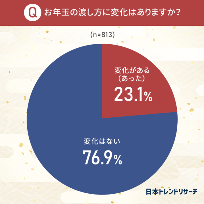 23.1%の方が、渡し方に「変化がある(あった)」ようです。