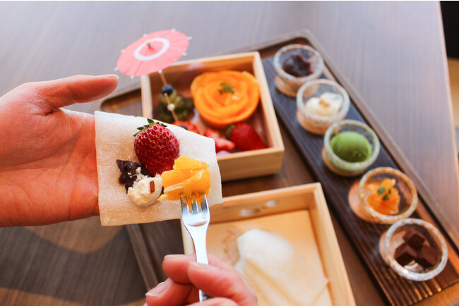 当メニューは、苺やオレンジといった新鮮なフルーツや定番の餡子の他、手作りジャムや生チョコなど10種類の変わり種を、お好みで求肥に包んでお召し上がりいただけます。自分好みのオリジナル大福をお楽しみください。