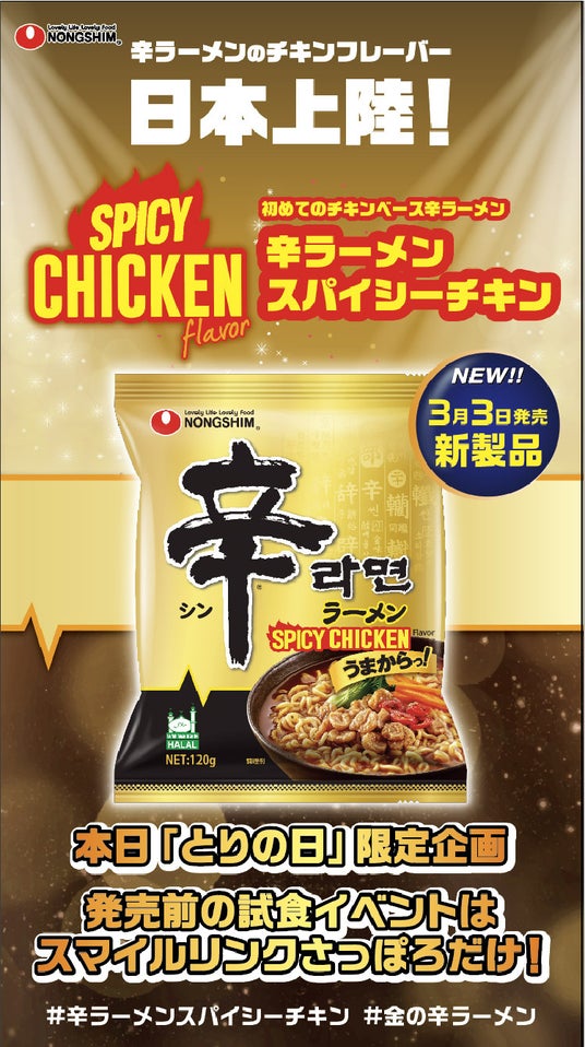 3月新発売予定の「辛ラーメン スパイシーチキン」を