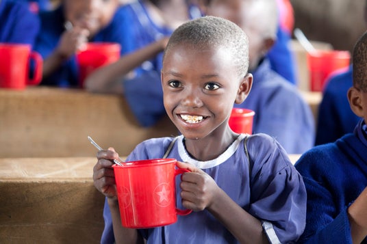 毎日のお買物で学校給食を支援できる、レッドカップキャンペーン。2011年開始以来、累計約2,800万人以上の子どもたちに学校給食を届けました(2023年末時点)。国連WFPが給食を入れる容器として使っている赤いカップを目印に、レッドカップキャンペーンに賛同する企業からキャンペーンマークのついた商品が発売されています。対象商品を購入すると、その売り上げの一部が企業から寄付されます。