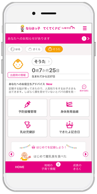 福島県楢葉町に採用された『ならはっ子 てくてくナビ』は、スマートフォン・タブレット端末・PCに対応したサービスで、妊産婦と子どもの健康データの記録・管理や予防接種のスケジュール管理、出産・育児に関するアドバイスの提供、離れた地域に住む祖父母など家族との共有機能や、町が配信する地域の情報をお知らせするなど、育児や仕事に忙しい母親や父親を助けてくれる便利な機能が充実しています。