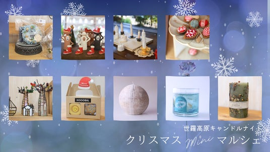 開園日は園内の「Rose Shop 花の森」で「クリスマスminiマルシェ」を開催中です。県内・近県のクラフト作家さんたちの作品や、キャンドルをご用意しています。クリスマスプレゼントにもおすすめのアイテムがそろっていますので、お買い物もあわせてお楽しみください。