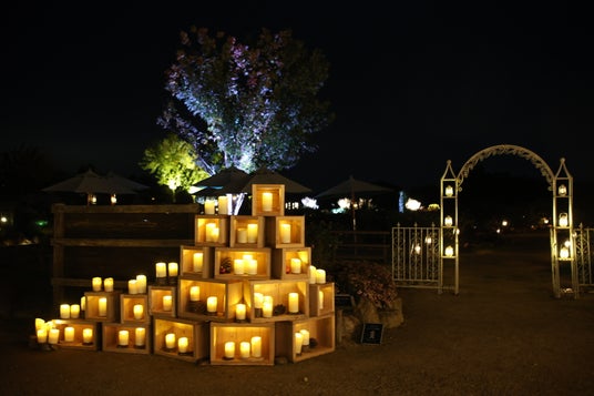 温かく優しいキャンドルの灯りで彩られるガーデン内は、落ち着いた雰囲気でお過ごしいただけます。毎年新しい展示を加えていますので、リピーター様にもお楽しみいただけます。また、今年は世羅高原農場グループの象徴的な花でもあるチューリップのプランターもお出迎えしています。