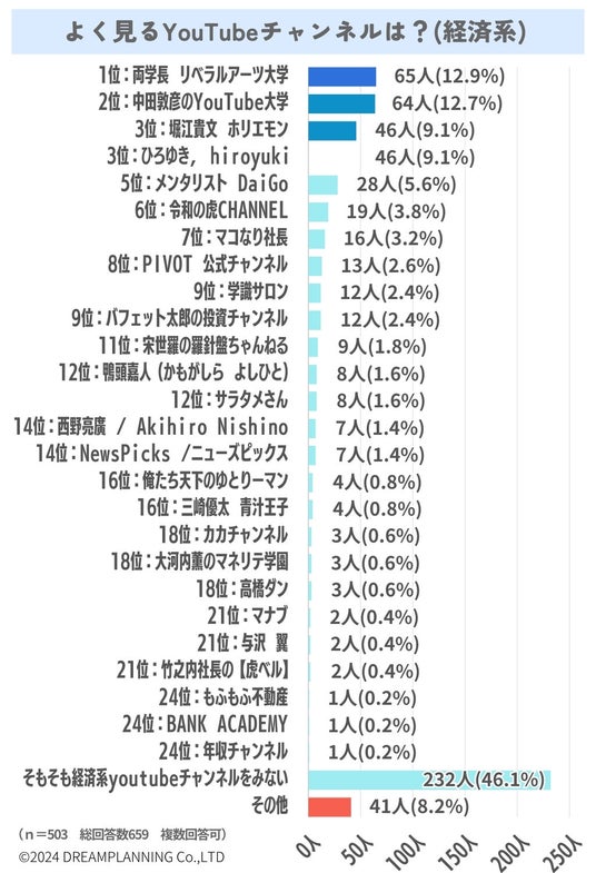 よく見る社会系youtube ※n=503(総回答数575 複数回答可)