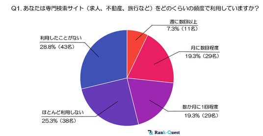 調査結果1.:あなたは専門検索サイト(求人、不動産、旅行など)をどのくらいの頻度で利用していますか?