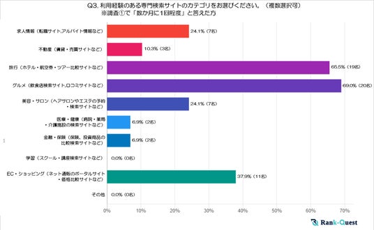 調査結果3.:利用経験のある専門検索サイトのカテゴリをお選びください。[複数選択可(注3)]※ 調査1.で「数か月に1回程度」と答えた方のみ回答