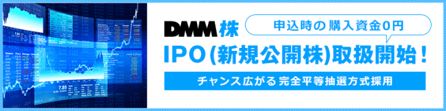 株式会社DMM.com証券(本社:東京都中央区、代表取締役 谷川龍二)は、2019年2月1日(金)よりお客様のご要望を受け、国内株式のオンライントレード【DMM株】にてIPO(新規公開株)の取扱いを開始いたします。