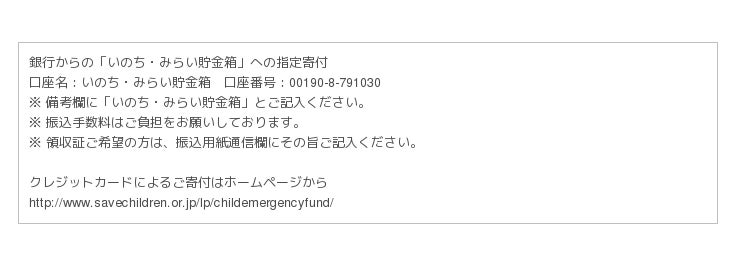 セーブ・ザ・チルドレンは、この支援活動の資金として必要になる150万ドル(およそ1億8千万円)の募金を開始しました。