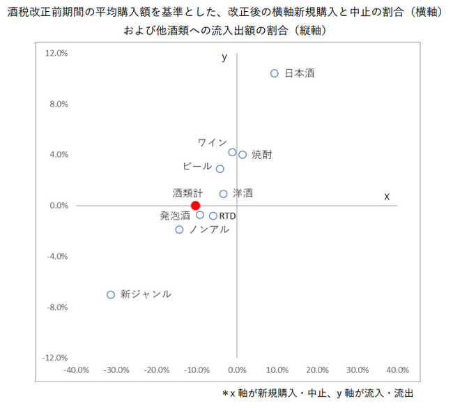 「新ジャンル」にマイナス、「日本酒」にプラスの影響が
