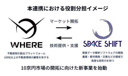 株式会社スペースシフト(本社:東京都千代田区、代表取締役:金本 成生 以下「スペースシフト」)と株式会社WHERE(本社:東京都文京区、代表取締役:阿久 津岳生 以下「WHERE」)は、人工衛星データを利活用した不動産関連ソリューションに取り組むため、MOUを締結したことをお知らせします。さらにWHEREは、スペースシフトが運営する事業共創プログラム「SateBiz」への参画を通じ、両者の連携をより一層加速させていきます。