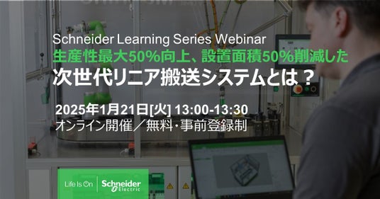エネルギーマネジメントおよびオートメーションにおけるデジタルトランスフォーメーションのリーダーであるシュナイダーエレクトリックは、次世代搬送システム「Lexium MC12 マルチキャリア」に関する無料オンラインウェビナーを2025年1月21日(火)に開始します。