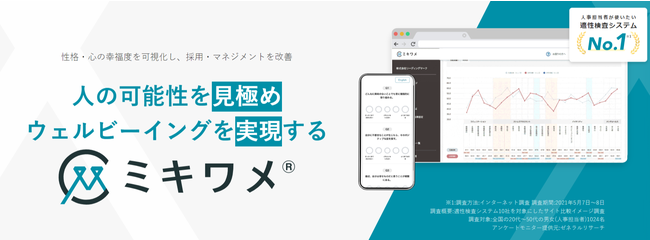 - 社員のメンタル状態を可視化し、性格をもとにアドバイスをすることでウェルビーイングを実現「ミキワメ ウェルビーイング」https://mikiwame.com/well-being.html?data=pr