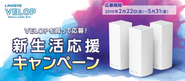 Linksysでは確実かつ高速なネットワークを提供する、世界でも先駆的なモジュール式メッシュWiFi『VELOP』を展開しています。より快適なWiFi環境のもとで新生活を始めていただけるよう、この度、VELOP購入者を対象とした「新生活応援キャンペーン」を実施いたします。
