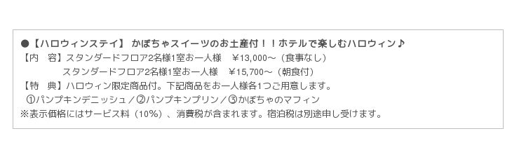 ■ハロウィンスイーツのお土産付!ハロウィンステイプランもこの秋初登場!